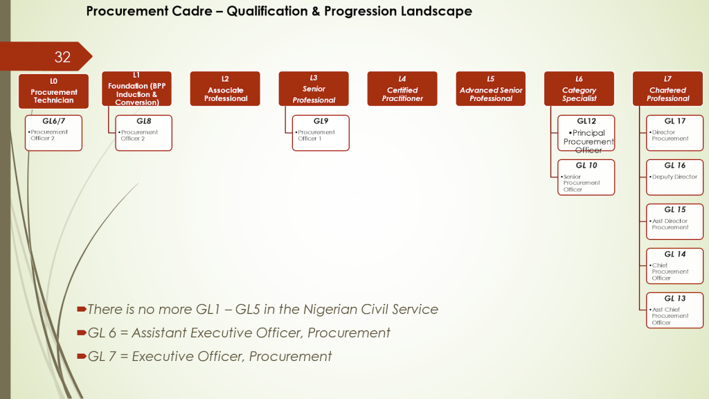 The certification framework is based on global best practice adapted to meet the needs of procurement professionalism Nigeria. The system and process of the certification took into cognisance the need for professionalization of procurement and engagement of competent public and private procurement Practitioners.