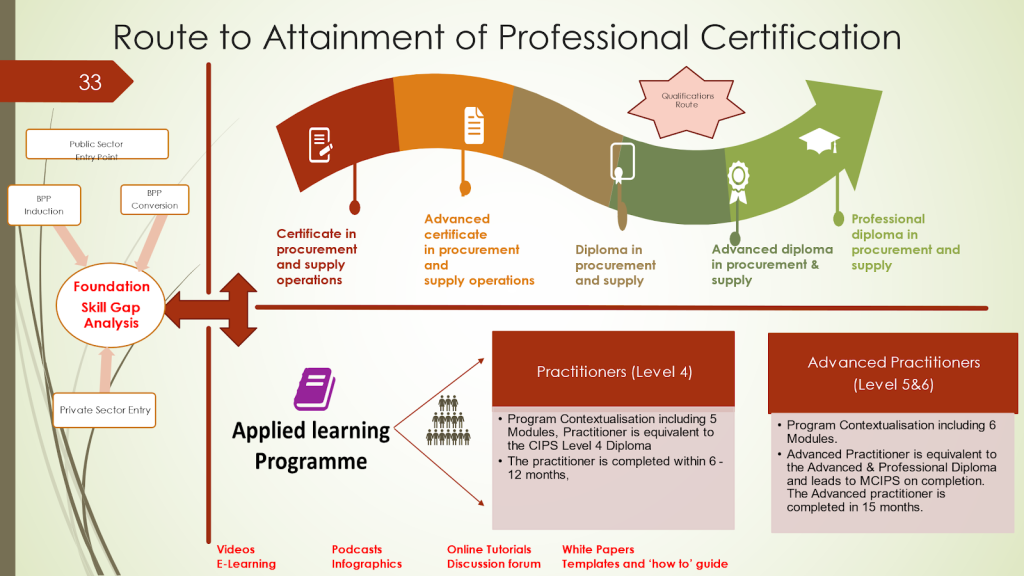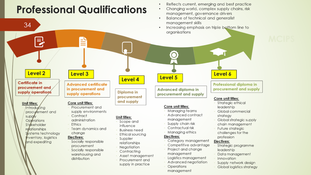 The procurement element of the SPESSE program is designed around the CIPS professional qualifications, based on its global standards. There shall be two distinct routes to attaining qualifications, vis:
